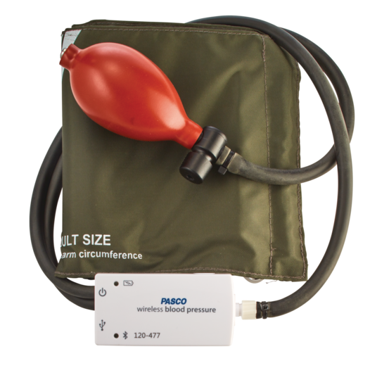 PASCO’s Wireless Blood Pressure Sensor allows students to quickly and easily measure both systolic and diastolic arterial blood pressure (mmHg) as well as heart rate (pulse in bpm). Comparing the digits display for systolic and diastolic pressure with the display of blood pressure from the real-time graph helps students gain a contextual understanding of the physiology of blood pressure.